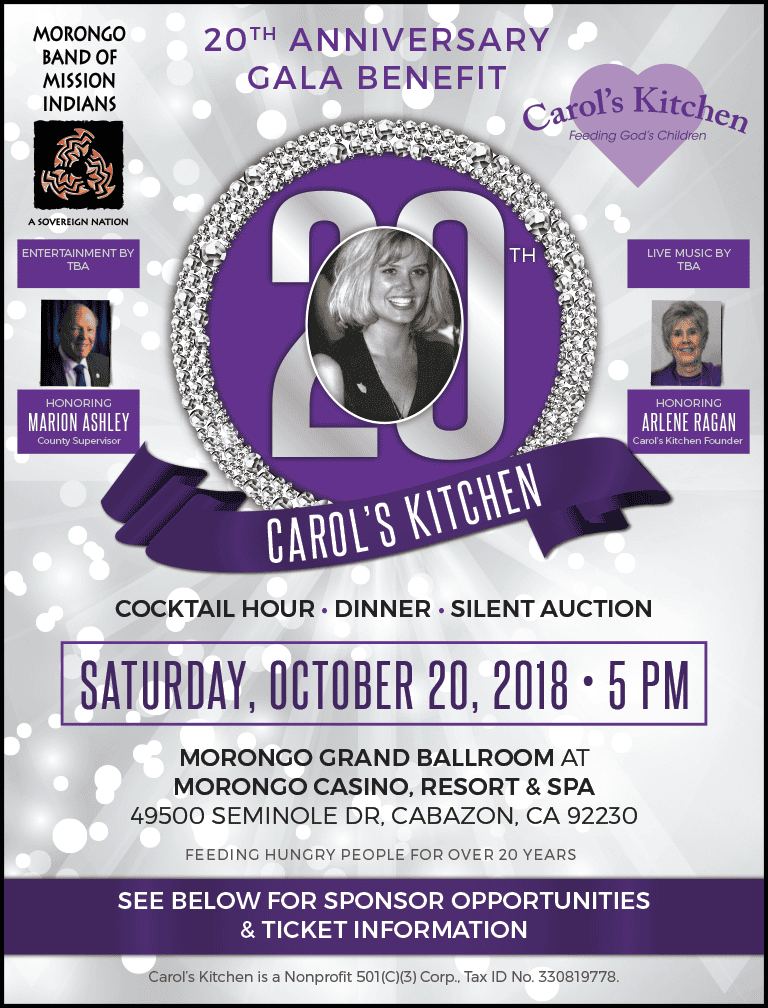 Carol’s Kitchen is a Nonprofit 501(C)(3) Corp., Tax ID No. 330819778.